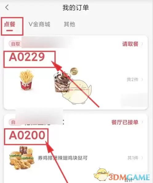 3、在我的订单页面,点击点餐选项,就可以查看取餐号了。
