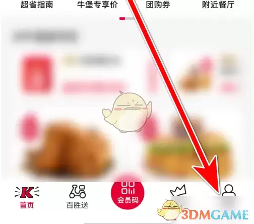 1、打开肯德基app,在首页中选择【我的】。