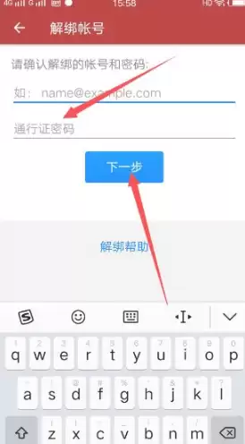 6、然后要求我们输入解绑的账号和密码才能执行到下一步,准确输入后,点击下一步,即可完成解绑。