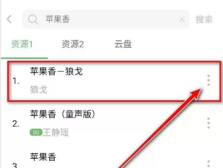 3、在搜索结果中找到你想要的歌曲版本,点击该歌曲右侧的【三个点】图标,展开更多选项。