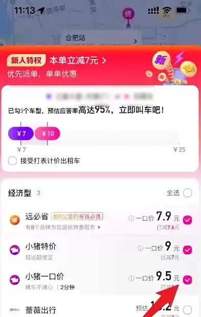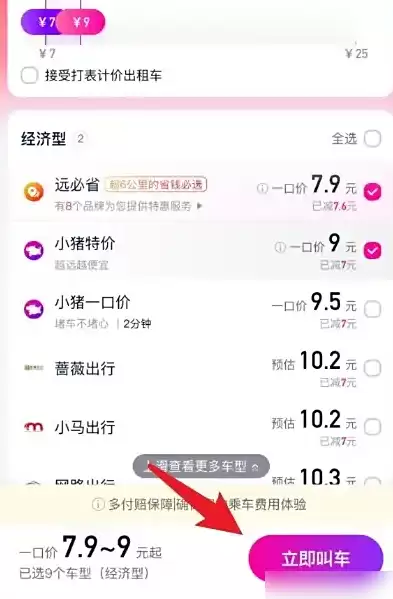 如下先订好要打车的起始点,取消勾选一口价的车型