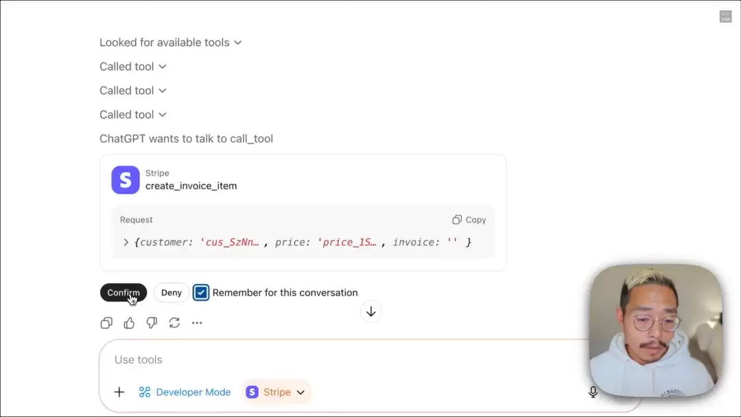 授权成功后,我们就可以开始在ChatGPT聊天框中正常调用Stripe了。