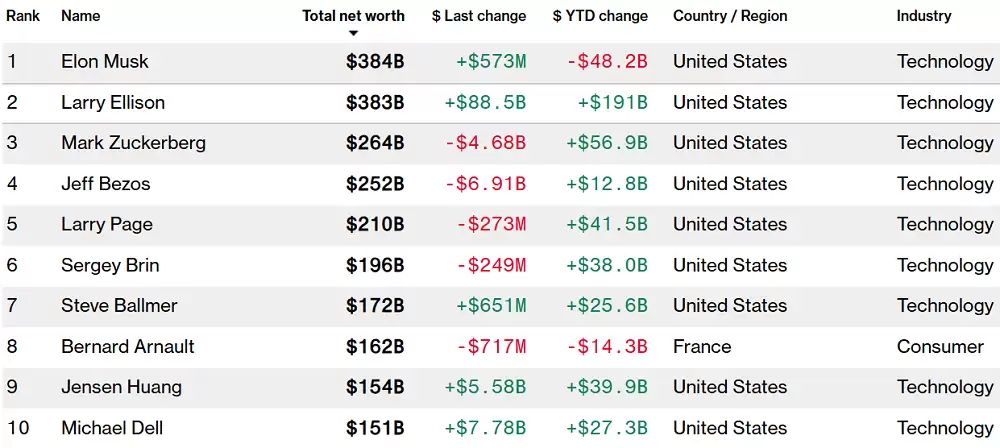 巨额合同的曝光,也使甲骨文创始人兼董事长Larry Ellison的个人财富增加了近900亿美元,在今天一度逼近4000亿美元,超过马斯克的3830亿美元,成为世界首富。彭博社亿万富豪指数的最新数据显示,目前Ellison的资产总额有所回落,是世界上第二富有的人。