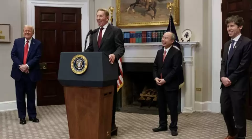 今年1月,埃里森与美国总统特朗普、软银首席执行官孙正义、OpenAI首席执行官山姆·奥特曼共同宣布"星际之门"项目