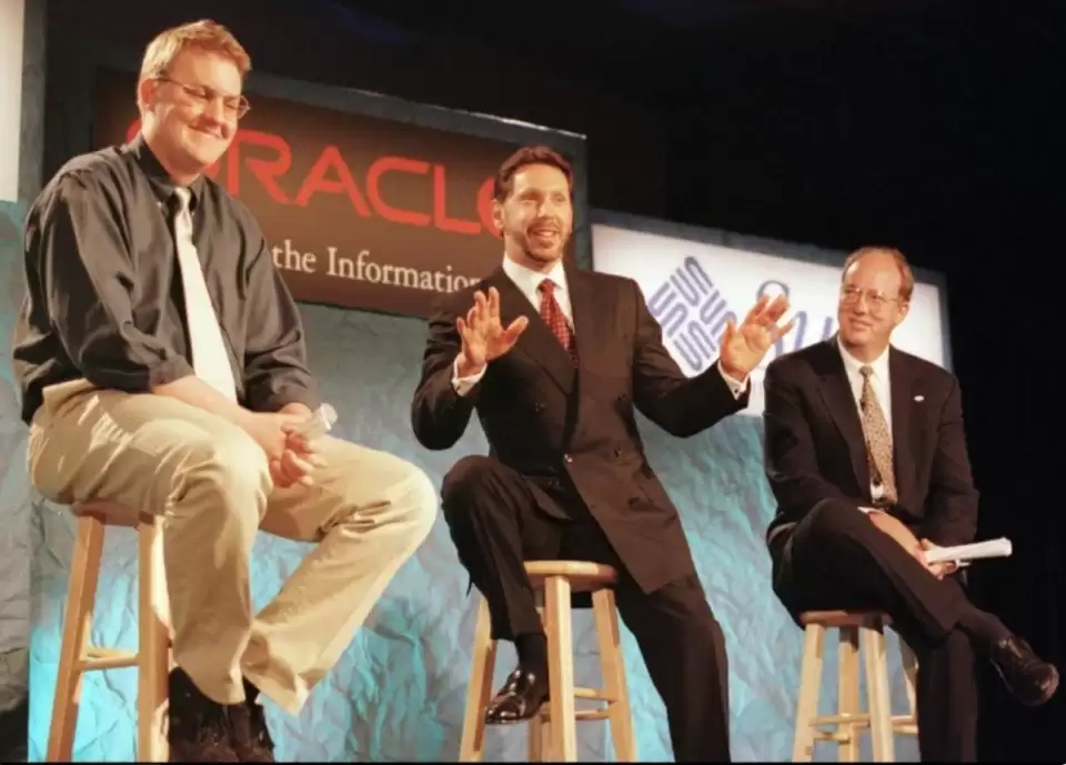 然而,过度扩张的代价在90年代末显现。管理混乱和软件更新滞后又让甲骨文陷入低谷,股价大幅下挫,客户抱怨实施成本高昂、系统复杂。埃里森不得不裁员、重组,并加大研发投入以稳住核心业务。与此同时,他与比尔·盖茨的竞争成为硅谷焦点。微软凭借Windows系统牢牢掌控桌面市场,并通过SQL Server挑战甲骨文的数据库业务。盖茨的工程师式理性与埃里森的“海盗”风格形成鲜明对比,这种个性冲突长期被视为硅谷的经典对立。