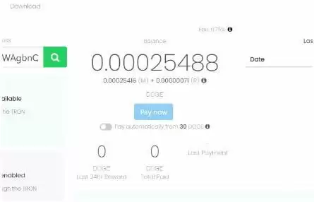 最后,点击挖矿软件上的蓝色图标Website,跳转到网站页面上后,将Pay automatically from 30DOGE前面的开关关掉。这个是自动转账的开关,当你挖满30个狗狗币后会自动转账到你的狗狗币。因为使用的是某交易所的狗狗币收款地址,该交易所最小收款为40个狗狗币,小于40个狗狗币会被平台吃掉。建议挖的多一些后,点击Paynow再将doge转账到你的收款。