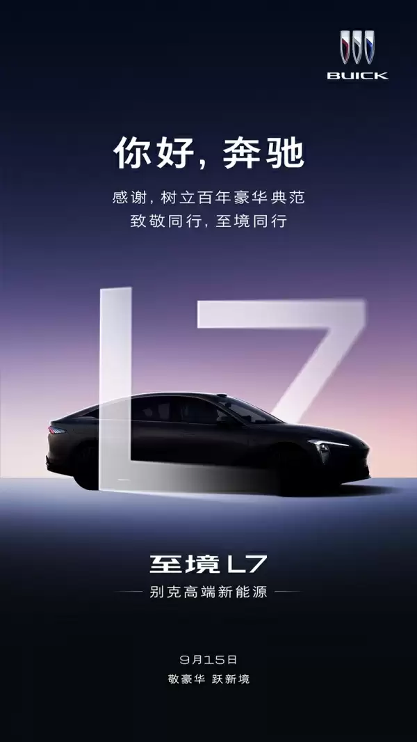 9 月 15 日见证时刻,别克至境 L7 以超 1400km 续航与智能驾控亮相