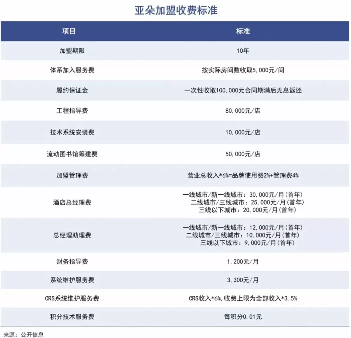 亚朵正式显示,加盟亚朵酒店需要支付一次性的收费有每间房5000元的服务费、8万元的工程指导费、5万元的流动图书馆筹建费,还有持续性的收费,诸如每个月需要付的2.9万-4.2万不等的酒店总经理、总经理助理费等等。