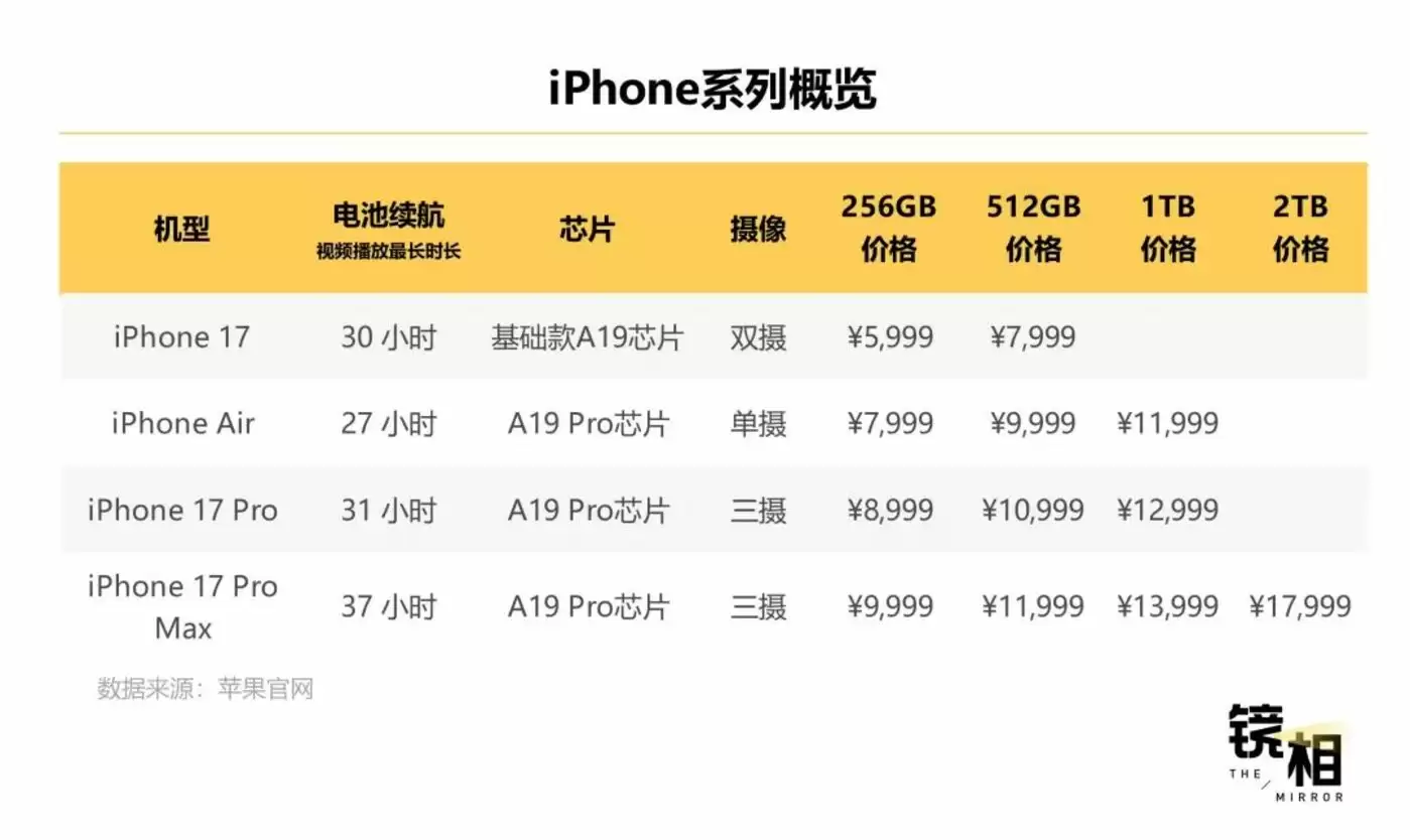 从命名就可以看出,苹果对 iPhone Air 的定位与 MacBook Air 对标:更薄、更轻、更畅销。
