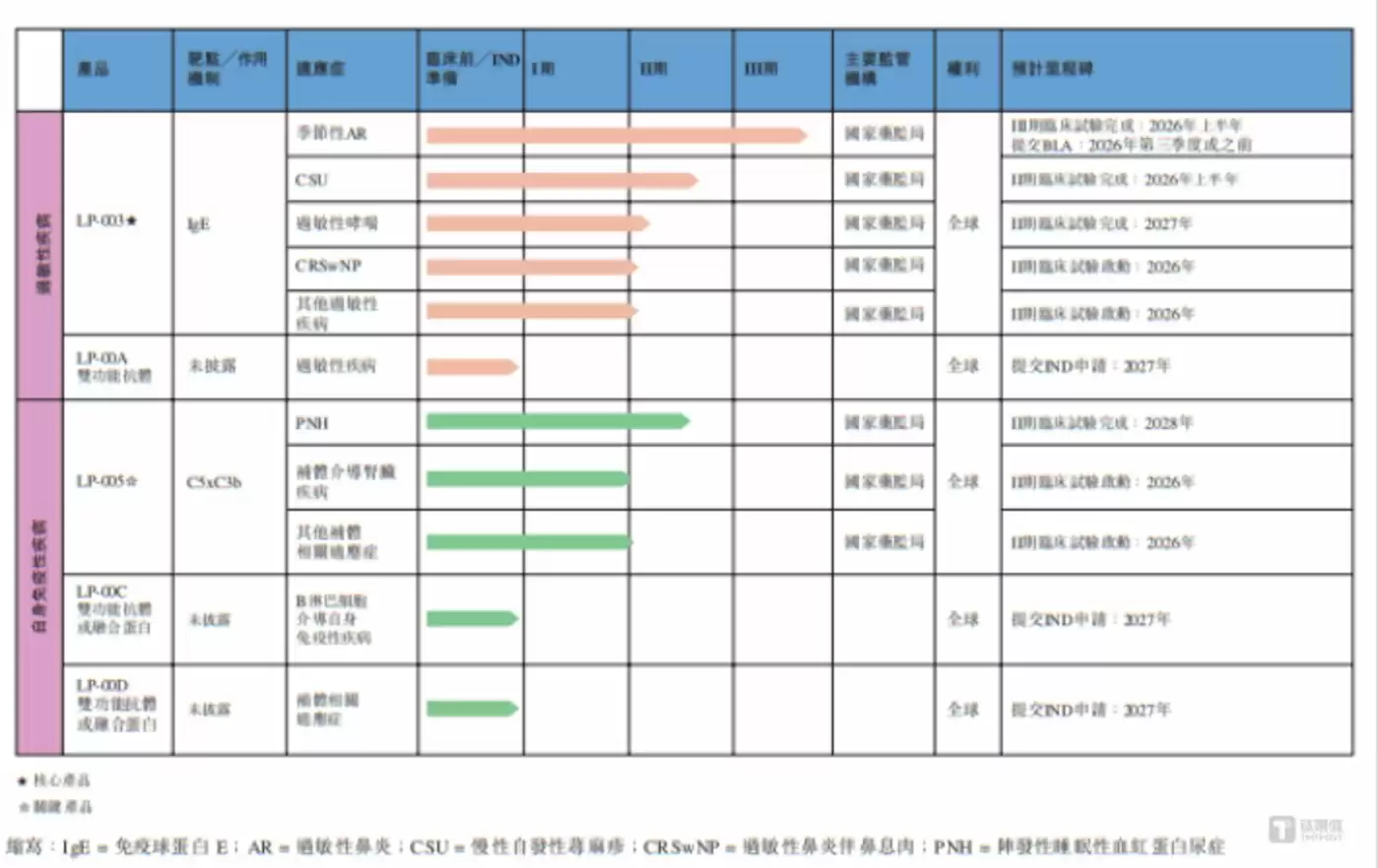 截至招股说明签署日,天辰生物已开发了LP-003、LP-00A双功能抗体、LP-005、LP-00C双功能抗体或融合蛋白、LP-00D双功能抗体或融合蛋白等5种管线。