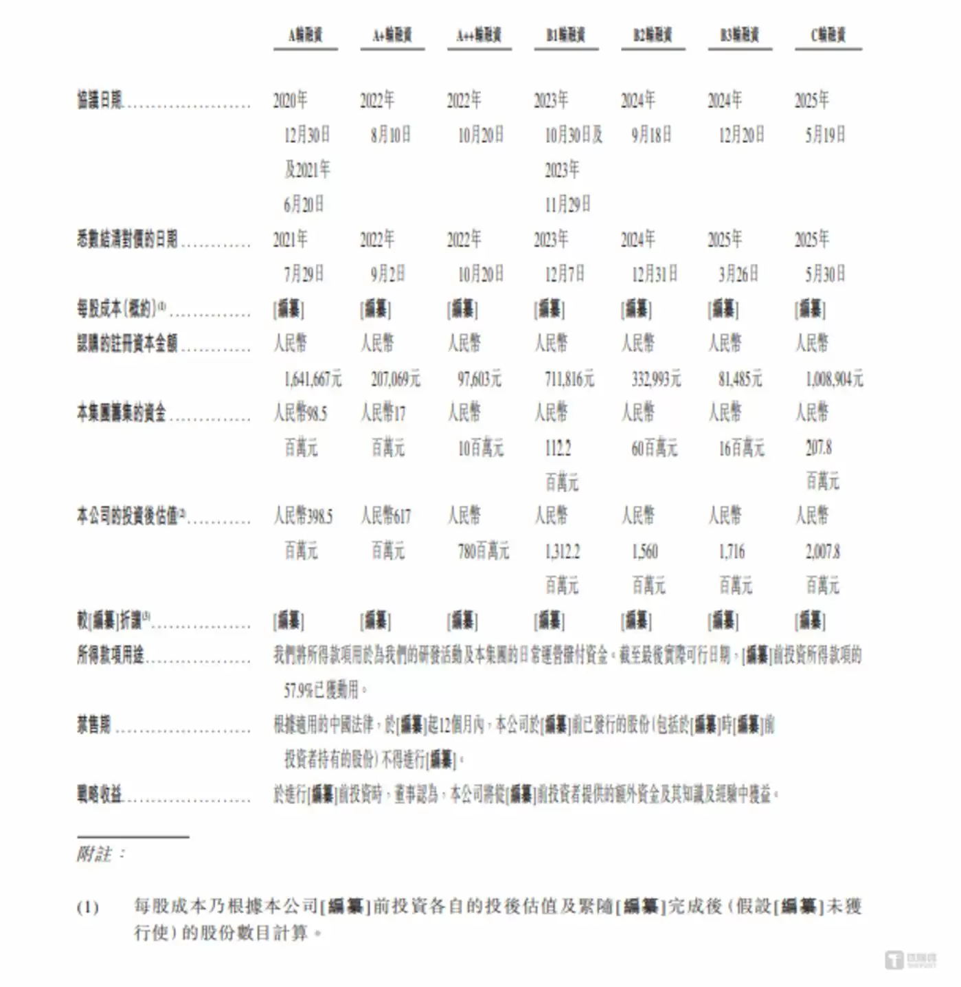 在天辰生物每年亏损规模高达1亿元左右的背景下,公司仍能维持经营屹立不倒,这一现象背后,与其成立以来颇受资本青睐、持续获得融资输血密切相关。据悉,天辰生物成立于2020年10月,截至目前仅4年左右的发展历程中,已先后完成7轮融资,累计融资额超过5亿元,为其覆盖持续亏损、支撑业务推进提供了关键资金支撑,具体融资情况如下: