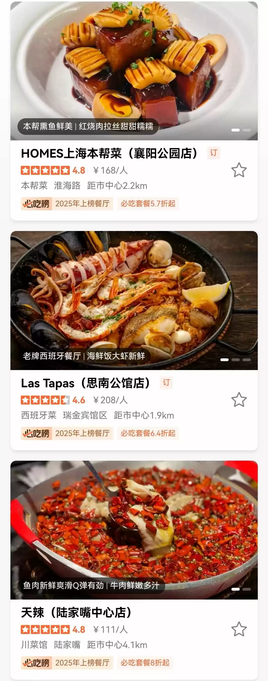 上海的大众点评必吃榜中,排名第一的是一家本帮菜;第二名是一家西餐厅;第三名则是一家川菜馆。