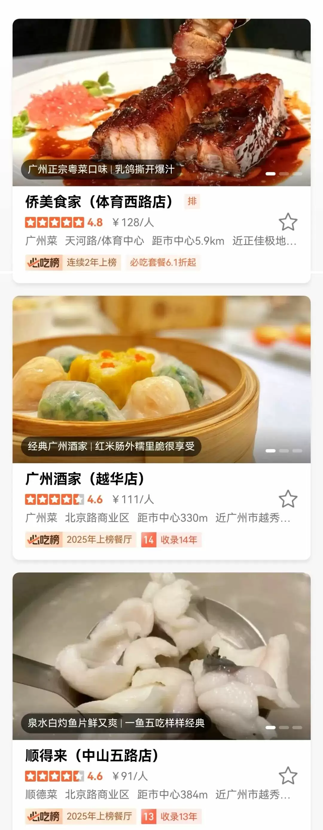笔者感受:高德和大众点评广州的榜单中,倒是挺符合地域特色,前三甲全部都是粤菜。不过在人均价格方面,高德扫街榜里的餐厅均价整体上还是低于大众点评必吃榜上榜餐厅。