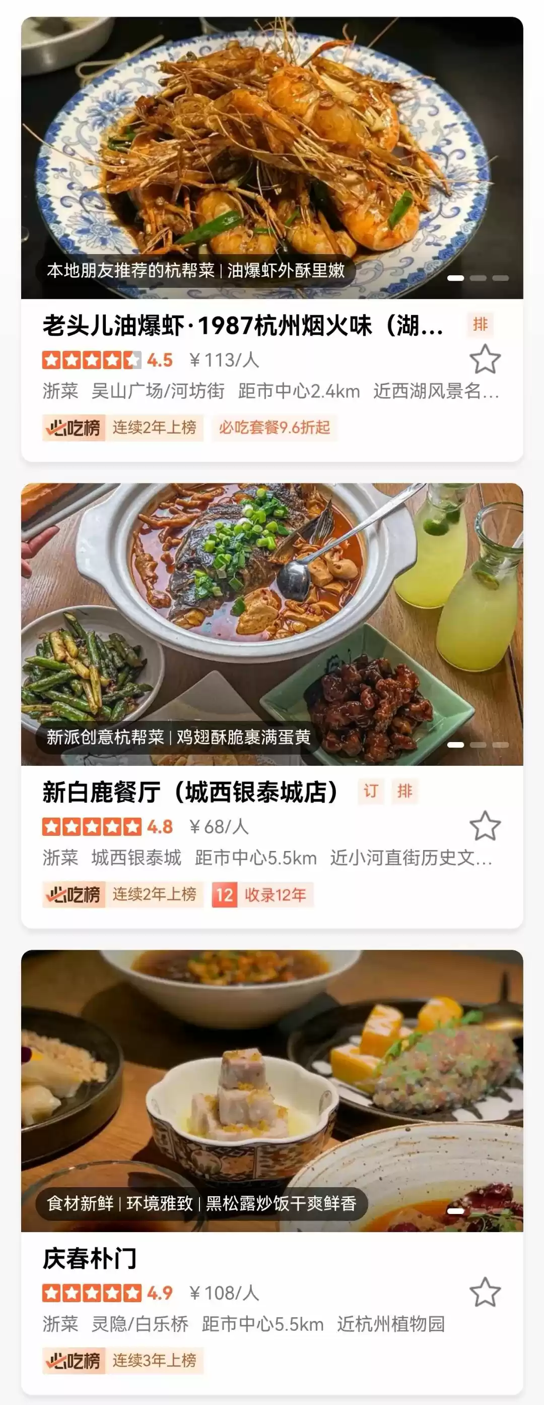 杭州的高德状元榜中,第一名是家韩国料理;第二名是家名称看上去像湘菜的浙菜馆;第三名则是家西餐厅。