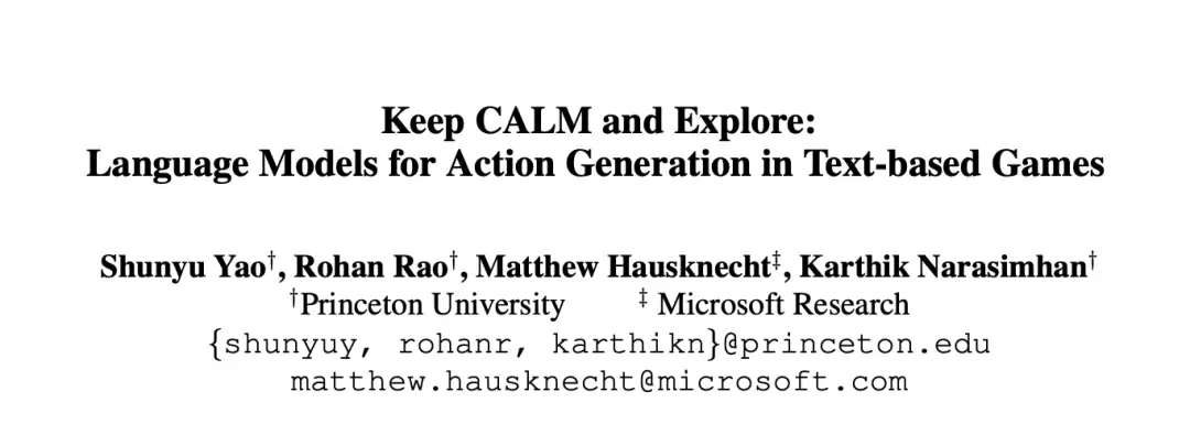 姚顺雨博士生涯的第一个工作叫CALM(2020),研究如何用语言模型来作为Agent来玩语言游戏。