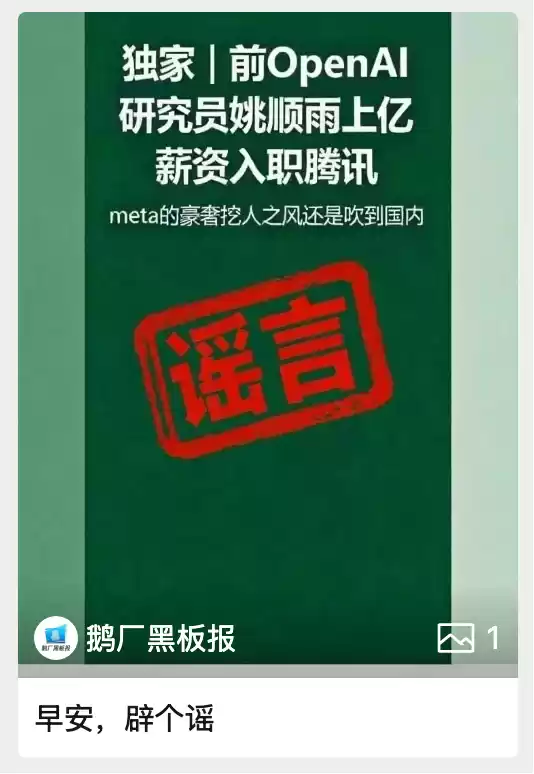有爆料说“姚顺雨上亿薪资入职腾讯”,但被腾讯最新对外辟谣否认了。