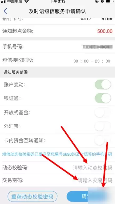 输入动态验证码、交易密码,最后点击 确定 。