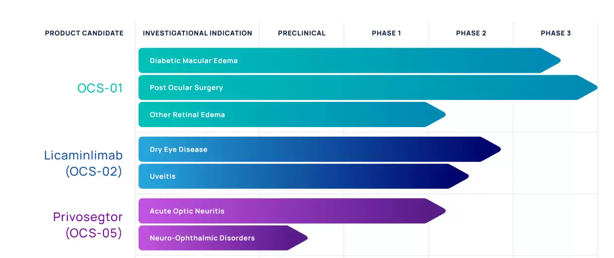 OCS-01之外,公司还开发了OCS-02和OCS-05管线产品。OCS-02是一种局部用抗TNF-α单克隆抗体片段,能够用于治疗干眼症,药物目前正在2b 期临床研究。OCS-05 是一种血清糖皮质激素激酶 2 (SGK-2激活剂,能够在急性视神经炎和其他神经眼科疾病等疾病中保护神经轴突,防止视力丧失,药物目前正在欧洲进行临床研究。