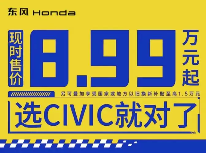 除了轩逸、朗逸等A级轿车,部分合资A+级轿车跟随降价。某东风本田经销商表示:“9月初厂家刚刚对第十一代新思域调价,目前起售价8.99万元,叠加置换补贴后低至7.49万元。”