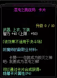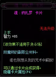 魂·纳扎罗,智力+65,上衣。魂·狄瑞吉的幻影,魔法攻击力+20、智力+50,武器、上衣、下装。熔弹萨缪尔双,力量+30、智力+30,武器、上衣、下装。混沌之奥兹玛,智力+40,武器、上衣、下装。
