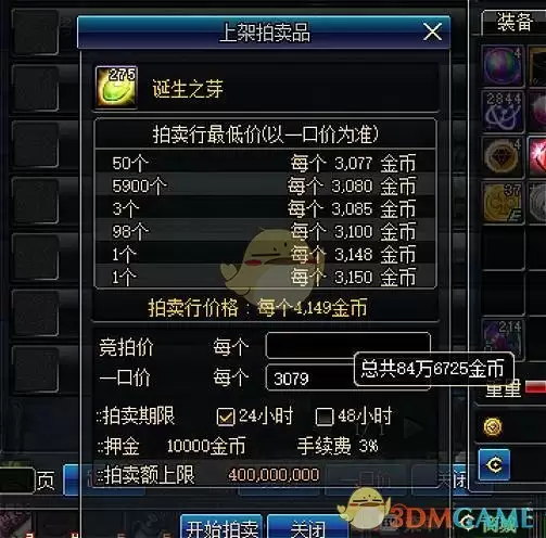 “断头谷”循环地图,打一次需要8点疲劳值,而这个副本,诞生之芽材料掉落非常多。经过一个95级的角色,满疲劳值打“断头谷”循环地图,蓝白装分解,紫装备买商店,有着1000多个无色收益,可以卖10万游戏币,背包纯金币24万,总共有34万游戏币。诞生之芽材料是275个,在拍卖行,一个诞生之芽材料3000金币左右,那么,就可以卖84万游戏币。