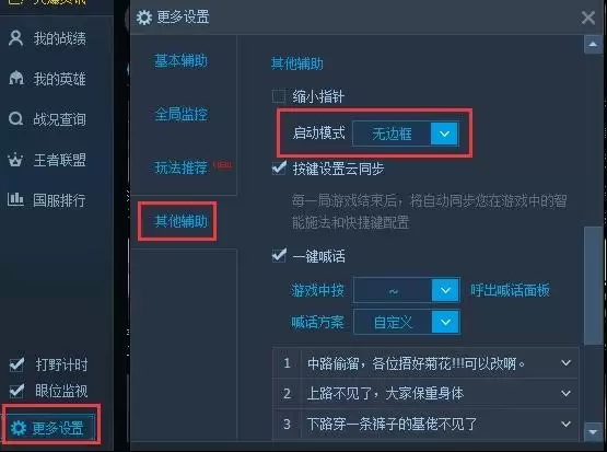 (2)关于您反馈的情况,建议您尝试将游戏设为无边框模式或者使用TGP无边框启动模式登录游戏,如图: