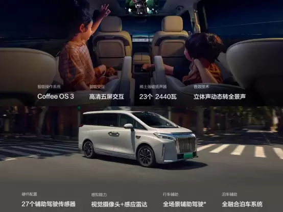 在智能化层面,高山7搭载了Coffee OS 3智能座舱系统,内置小魏同学语音助手,支持六音区分区交互以及五屏联动等功能,并且高山7还搭载了Coffee Pilot Ultra辅助驾驶系统,配备激光雷达,支持车位到车位的全场景辅助驾驶以及智能泊车功能,可以称得上第一梯队水平,是30万内唯一配备激光雷达且支持城区NOA的MPV。