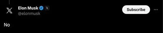 然而,就在几个小时后,X 平台的老板马斯克亲自出面辟谣,简单明了地表示:“不会(No)。”