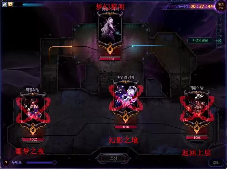 幻影之城,分别由幻影之城、城之幻影、2个无形之门和2个痛苦之境组成,且痛苦之境与下层相连,如果在下层攻坚时在限制时间没有通关痛苦之境或者挑战失败,则需要重新挑战上层。通关幻影之城/城之幻影会获得无形之门地图的增益效果,通关所有的无形之门后则第一阶段完成。