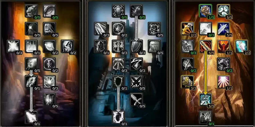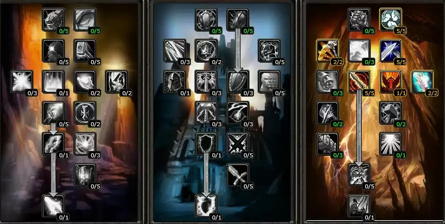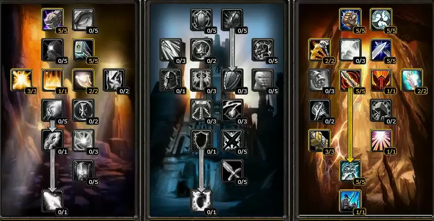在惩戒骑做任务到42级之后就出现了两个分支天赋可以点,他们分别是防御系和神圣系,两者带来的效果也是截然不同的,防御系天赋里的带来的护甲加成、命中加成以及全属性加成是惩戒骑后期单挑必备的天赋,而神圣系里的力量、智力属性加成以及奉献AOE能力的加成也是刷怪的极品。所以第二阶段该如何进行选择大神玩家并没有给出明确答复,接下来的内容就只能见仁见智了。
