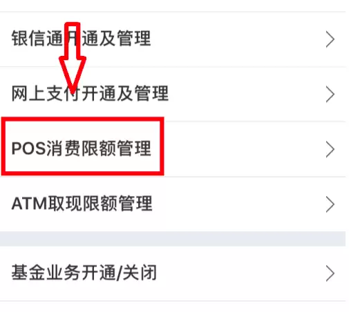 进入“POS消费限额管理”。