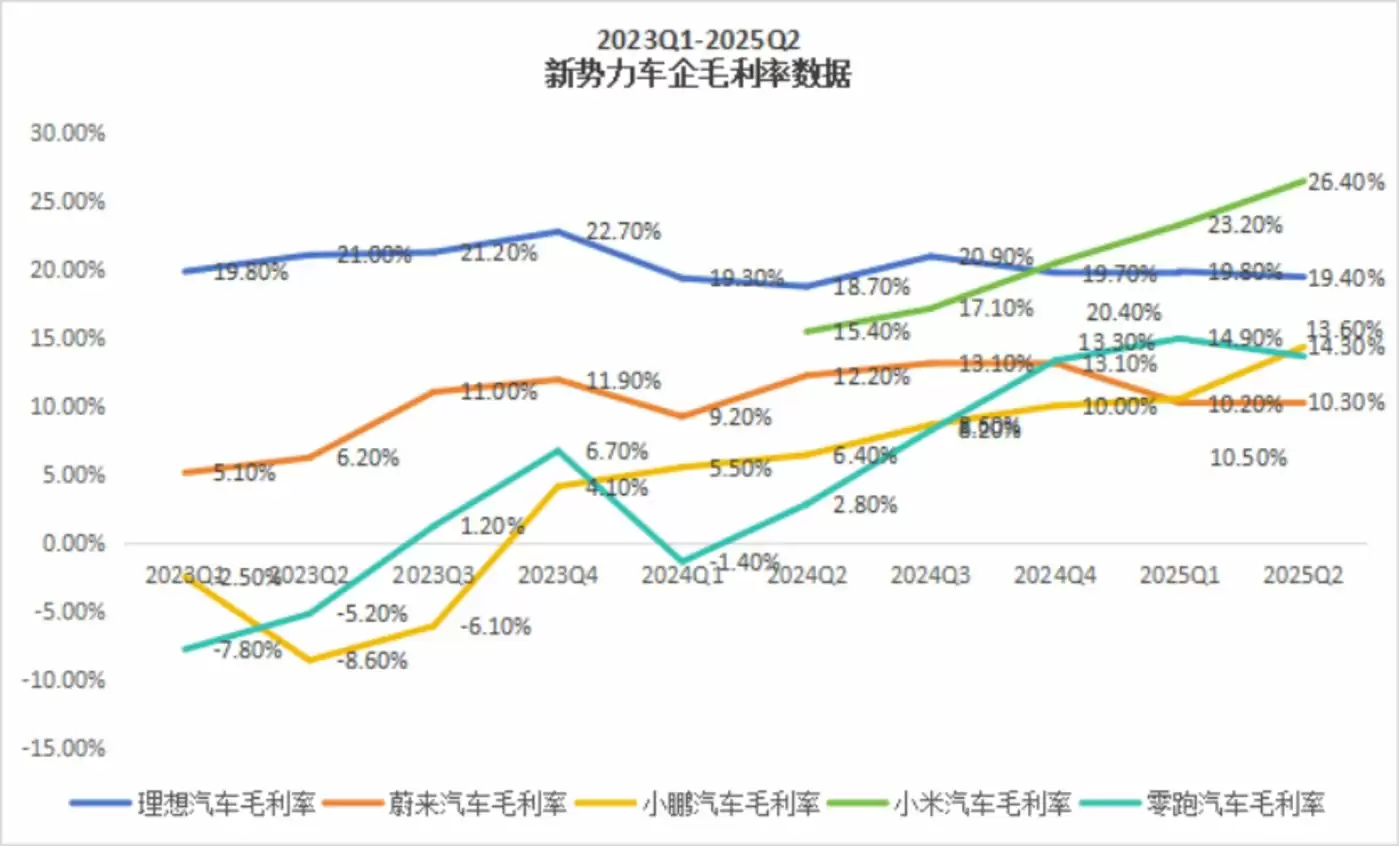 小米和小鹏,在迅速向盈利逼近,2025年第二季度小米汽车业务亏损是3亿元,相比上季度的5亿元环比收窄40%;小鹏亏损4.8亿元,环比收窄27%。
