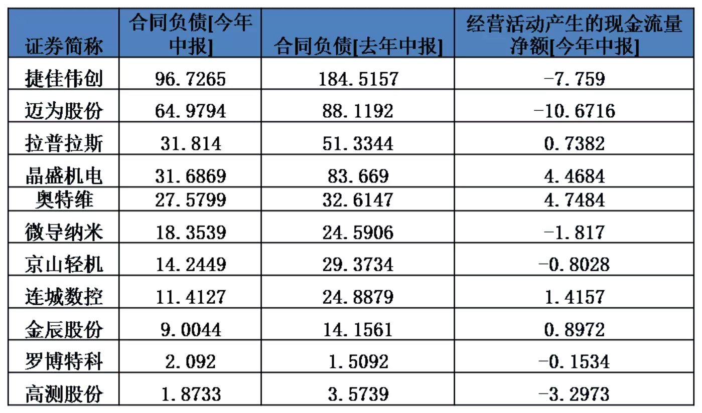 (1)合同负债往往更能说明问题:几乎所有的设备企业在今年2季度末的合同负债较去年同期都有所下降。捷佳伟创、晶盛机电合同负债下降较多。
