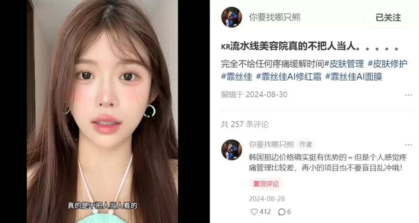 “韩国有些流水线整容医院,真的不把人当人看。”博主@你要找哪只熊 在vlog里如此说道。在韩国,不管做的项目再痛,医院全程都不会给顾客任何的缓解时间。和她同行的朋友,更是形容自己“就像案板上的猪,被人翻来翻去”。