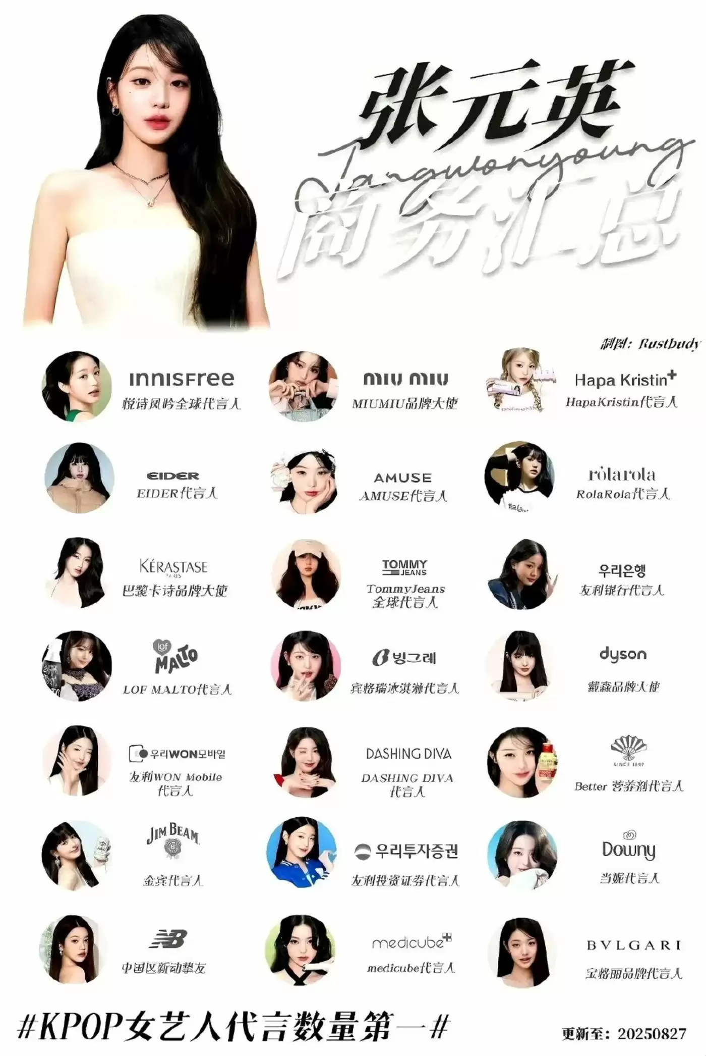二是,近十年通过“文化立国”,KPOP明星和文化的影响力随着影视、选秀、舞台大面积辐射,在韩国民众乃至全球消费者心中率先占位,潜移默化地重构了消费认知,带动了消费热情,以至于偶像在韩国演艺界的地位逐年上升,不再是鄙视链绝对的最底端。2024年,韩国女团IVE成员张元瑛就手握10个品牌的代言合约,涉及美妆、科技、服饰、食饮、支付等一众品类。