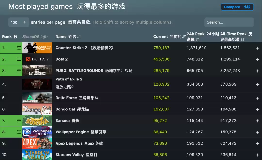 单说 600 多万同时在线人数,可能很多人感觉也就那样,毕竟咱们人多,习惯了数值膨胀。不过这数真不小了,这么说吧,我写稿时那个工作日的下午 3 点半,steam 前 50 个游戏的同时在线人数加起来,也只有 333 万。