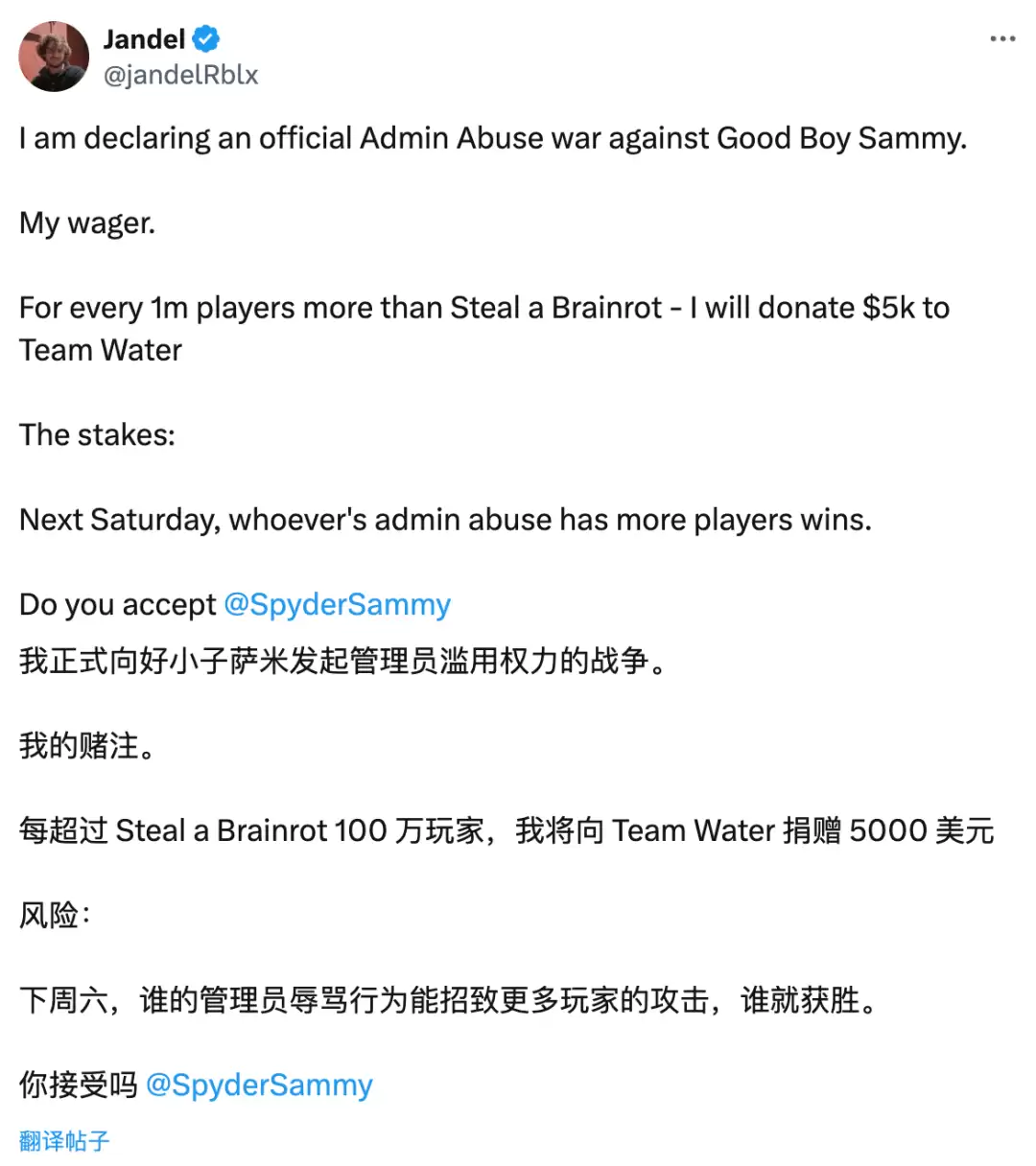 《种植花园》老板表示,每比《窃取脑腐》的在线玩家数多 100 万人,他就捐 5000 美元。