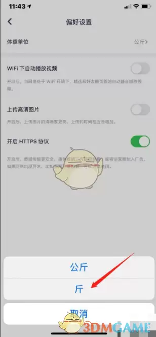 4、点击【体重单位】