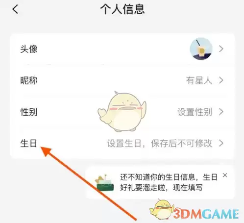 打开星巴克app,点击【我的】进入个人中心,点击头像进入个人信息页面,找到【生日】选项并轻触旁边箭头图标,输入新生日后轻触【保存】,若看到确认消息则说明更改已保存,不过需注意每年只能更改一次生日,且必须使用与星巴克账户关联的电子邮件地址登录。