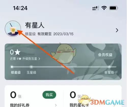 1、进入星巴克app【我的】页面,点击左上角的【头像】。