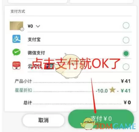 2、完成点单后,直接到结算支付页面,选择使用星星,如图;