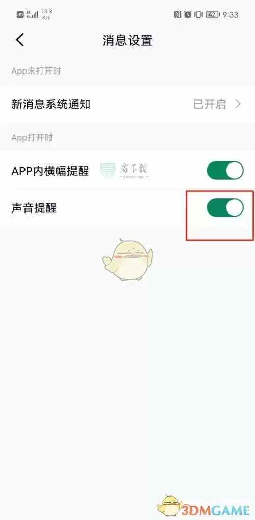 4、点击【声音提醒】后的绿色按钮,待显示灰色即可关闭,详见下图所示。