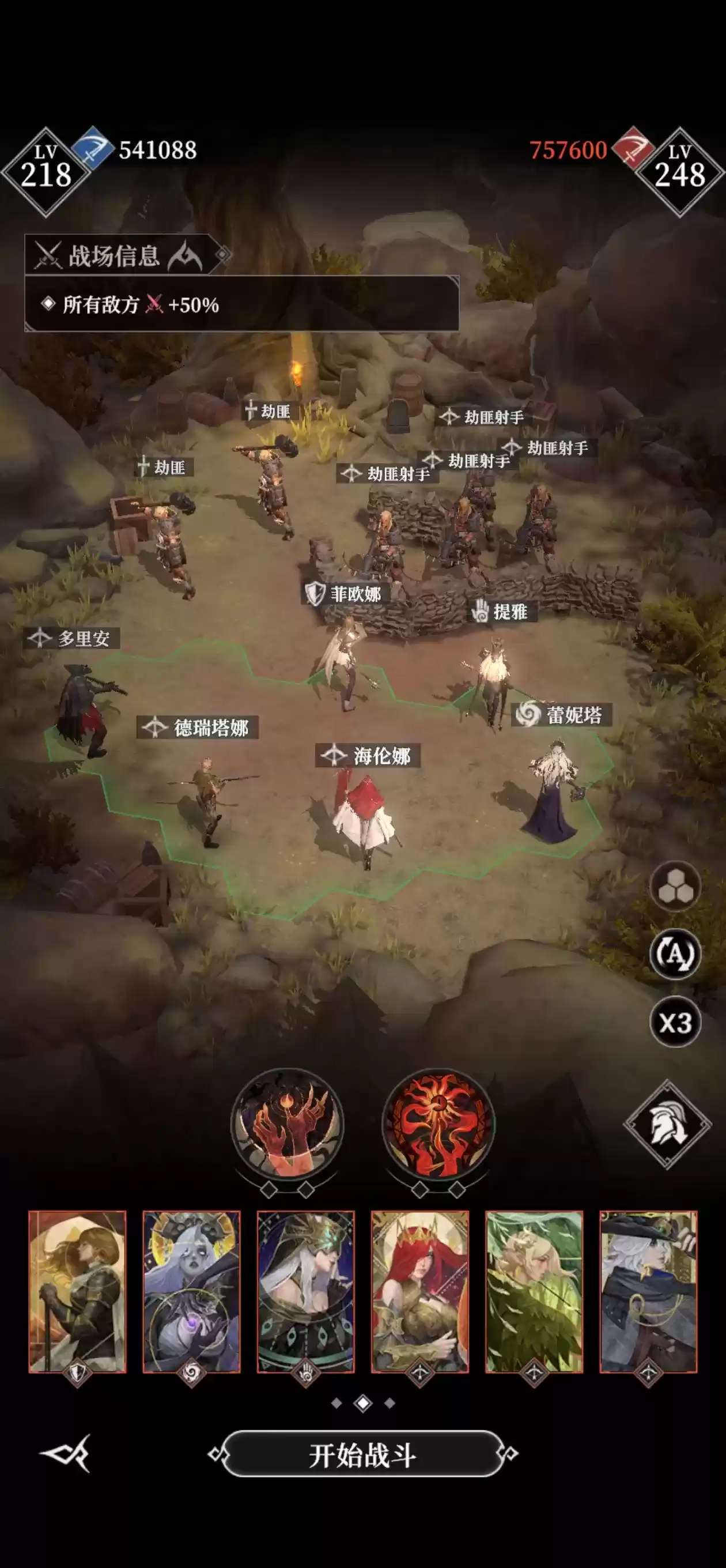 被动2”地雷陷阱”开始就会触发,开场后,在自己身前布置3格布置1个伤害地雷,触发地雷单位受到800%敏捷物伤,地雷无法被选成目标,没有阻挡,也不会受到伤害;该被动的打出的伤害时相当高额的。