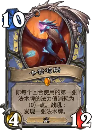 10费4/12,龙,你每个回合使用的第一张法术牌的法力值消耗为(0)点。战吼:发现一张法术牌。