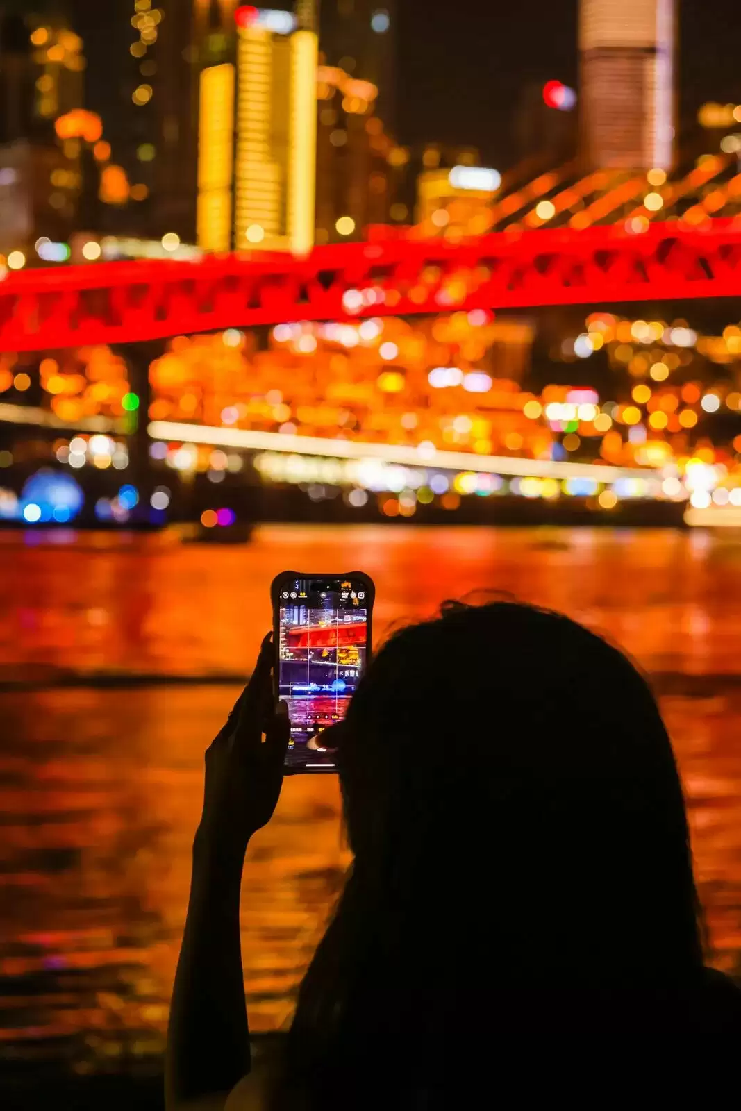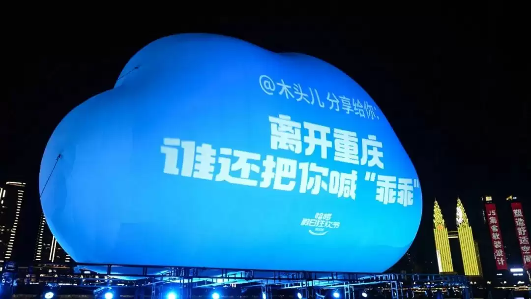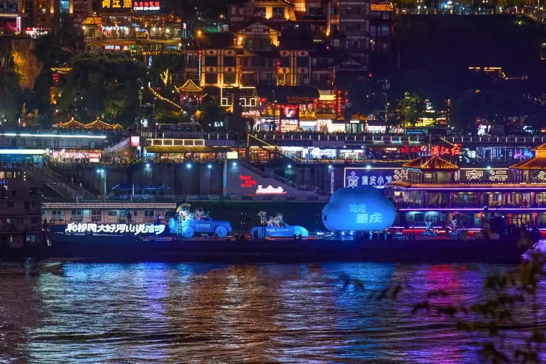9月13日晚上,“哈啰号”艺术装置点亮重庆江岸夜空,成为今年“哈啰假日狂欢节”的主场景,许多市民驻足拍照留念,引发广泛讨论。