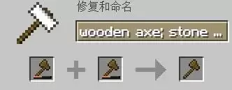 叠加两把斧的剩余耐久度,再额外获得12%的耐久度,按照铁砧机制保留魔咒。