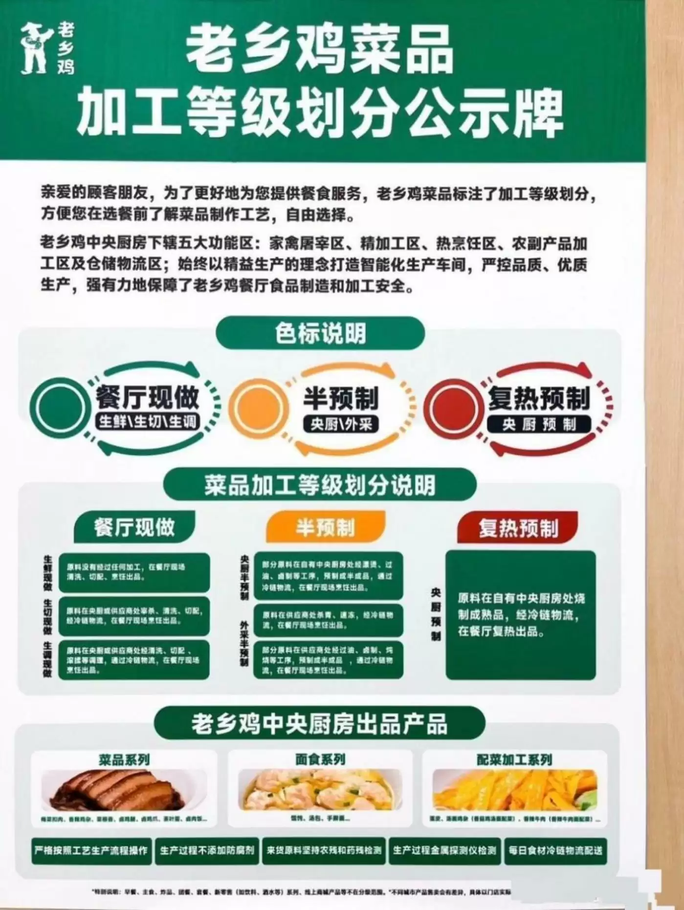 老乡鸡在行业中率先标注预制菜