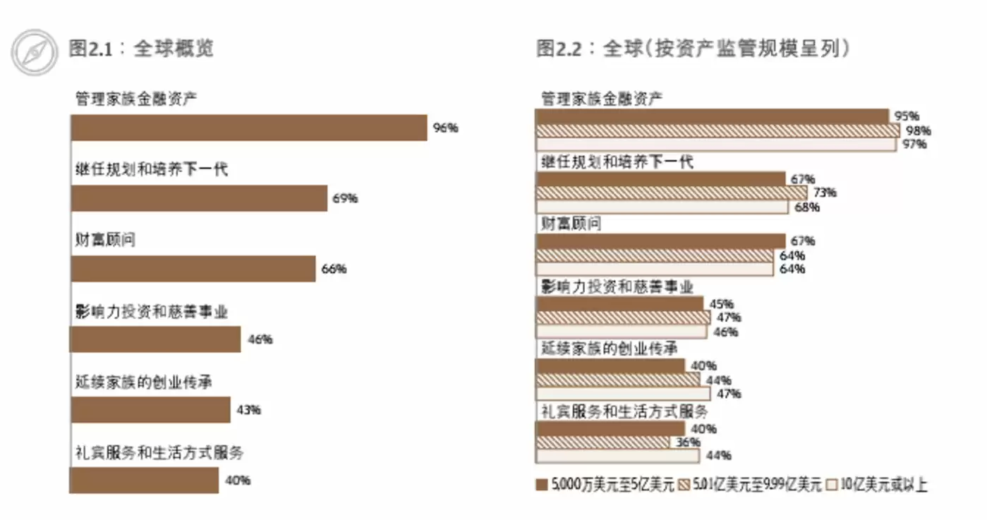 摩根大通调研总结的《2024全球家族办公室报告》中,财富传承子女和家族资产管理已排在前列。