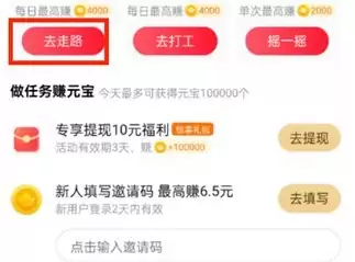 3、接着来到元宝中心的页面中我们往下滑动找到走路赚元宝后点击【去走路】;