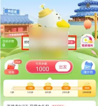 4、之后进入到走路赚元宝的页面中我们点击授权后,日常走路步数可被同步【开启】;